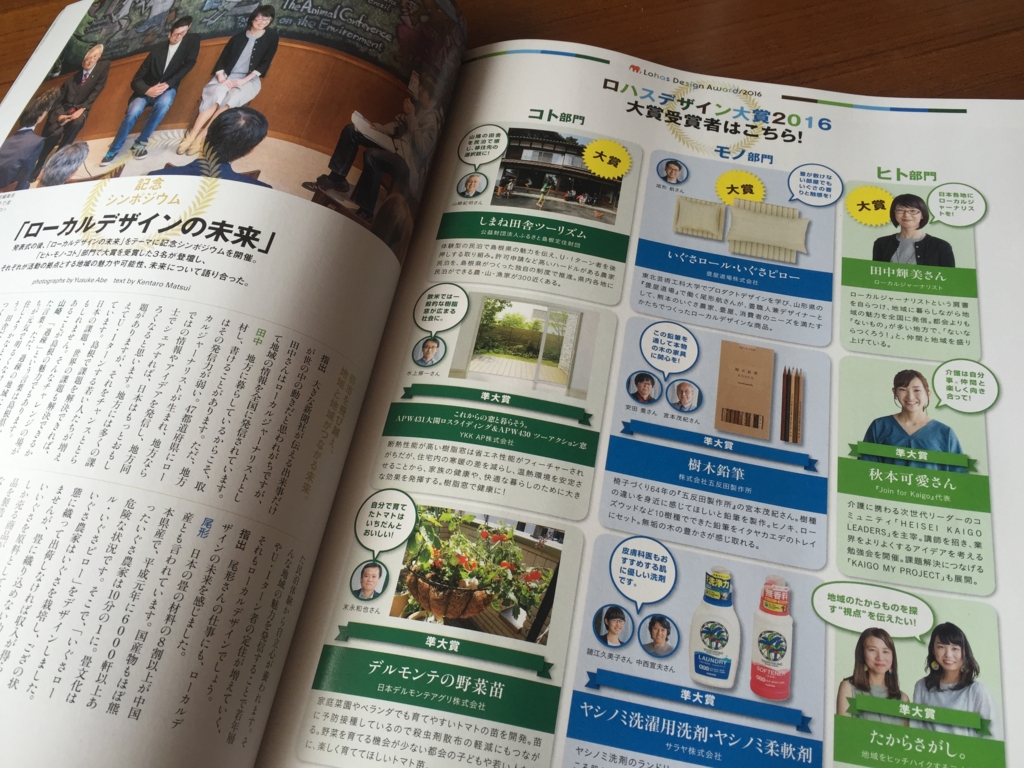 発売中のソトコト8月号に、先日いただいた「ロハスデザイン大賞2016」授賞式の様子が掲載されています。全国で活動するパワフルな皆さまとつながることができて、台湾から直行という強行スケジュールでしたが(笑)行ってよかった!このご縁を大切に、また何か一緒にできたらうれしいです。応援してくださった皆さま、ソトコトの皆さま、本当にありがとうございました◎